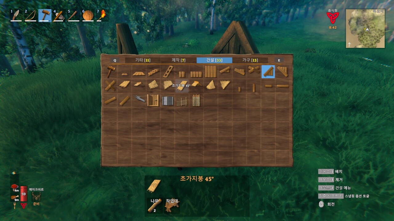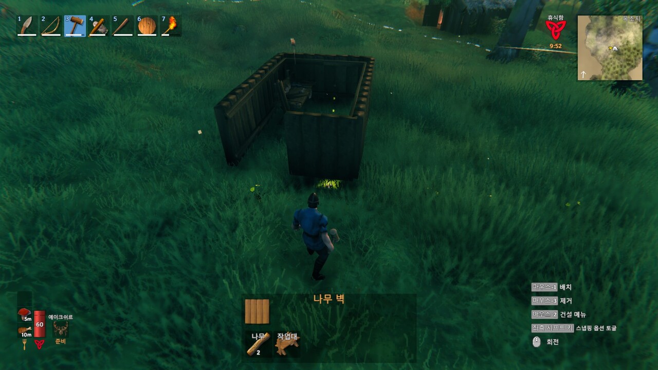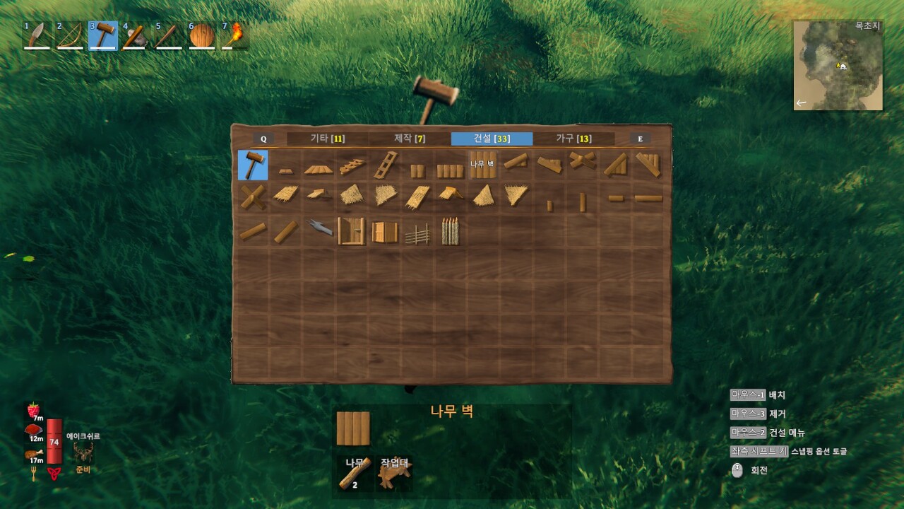 일단 건물 탭에서 나무 벽을 선택해서 벽을 만들어보겠습니다.