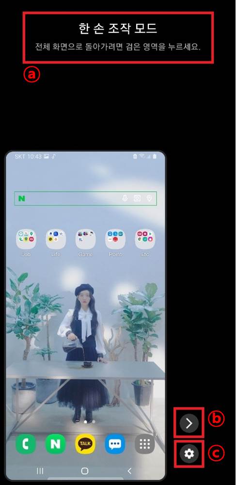 ⓒ 한 손 조작 모드 설정으로 진입 합니다.