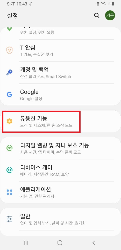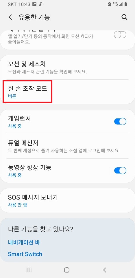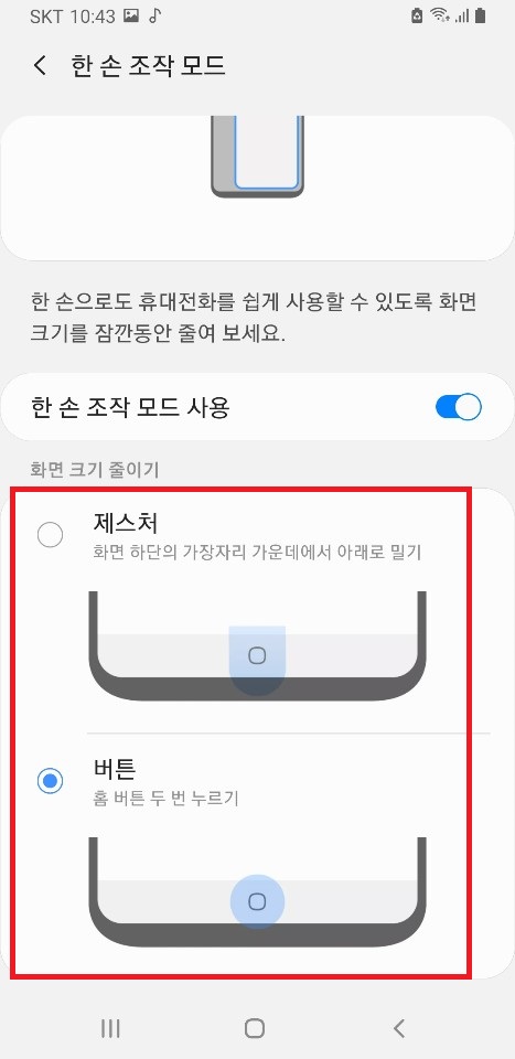 5. 설정에 따라 한 손 모드를 실행 합니다.