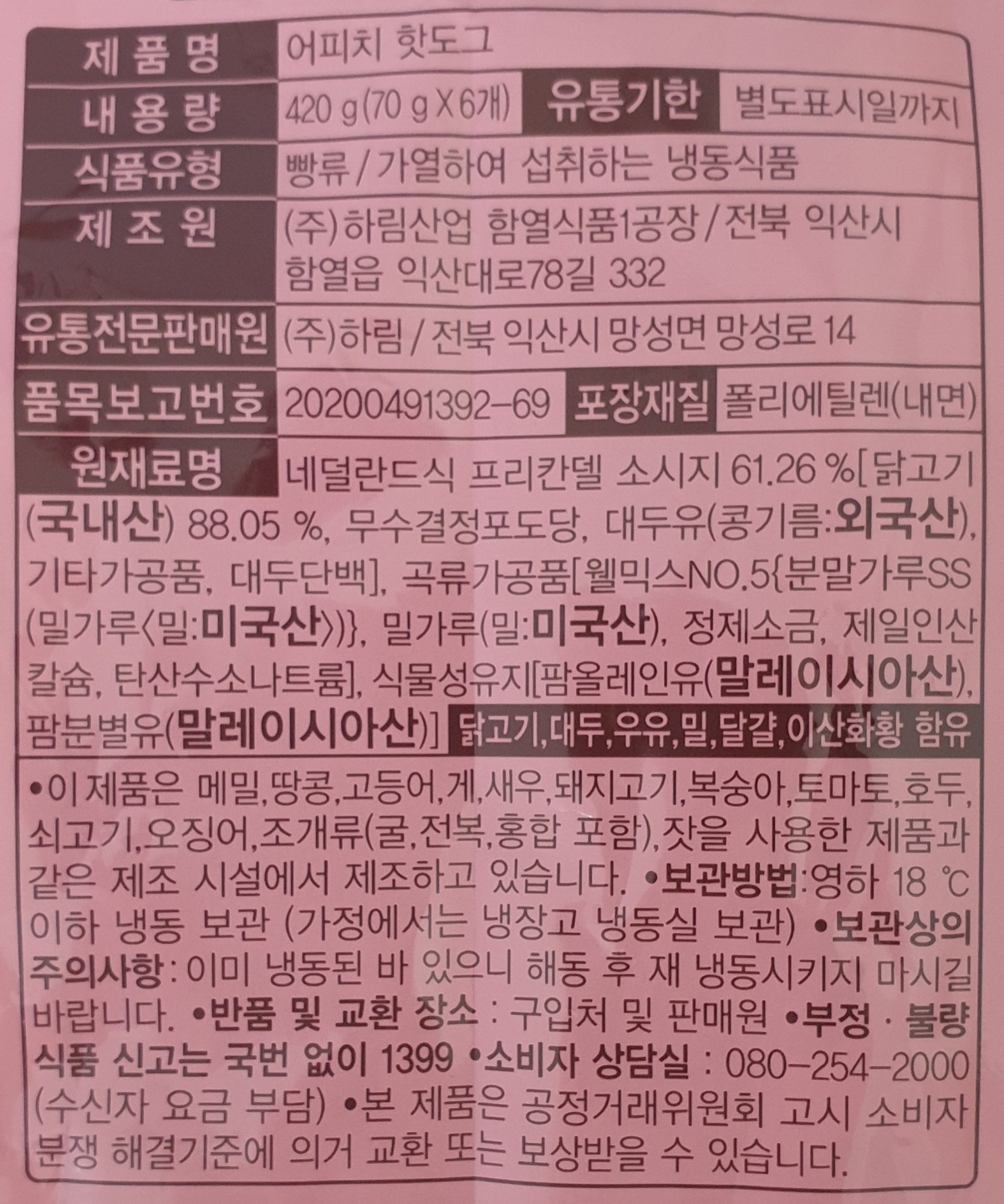 원재료 정보가 적혀 있습니다.