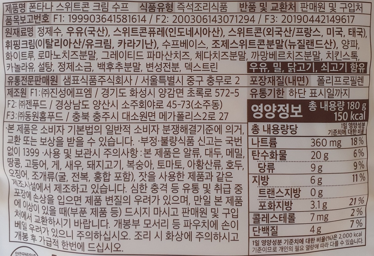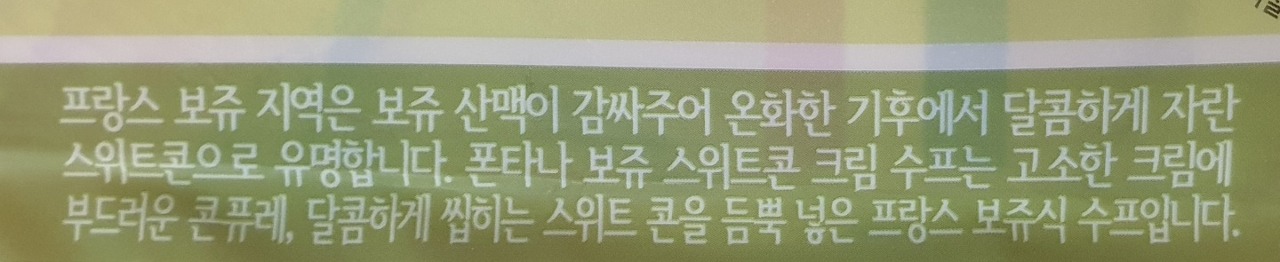 이번에 먹어본 음식은 폰타나 스위트콘 크림 수프 입니다.