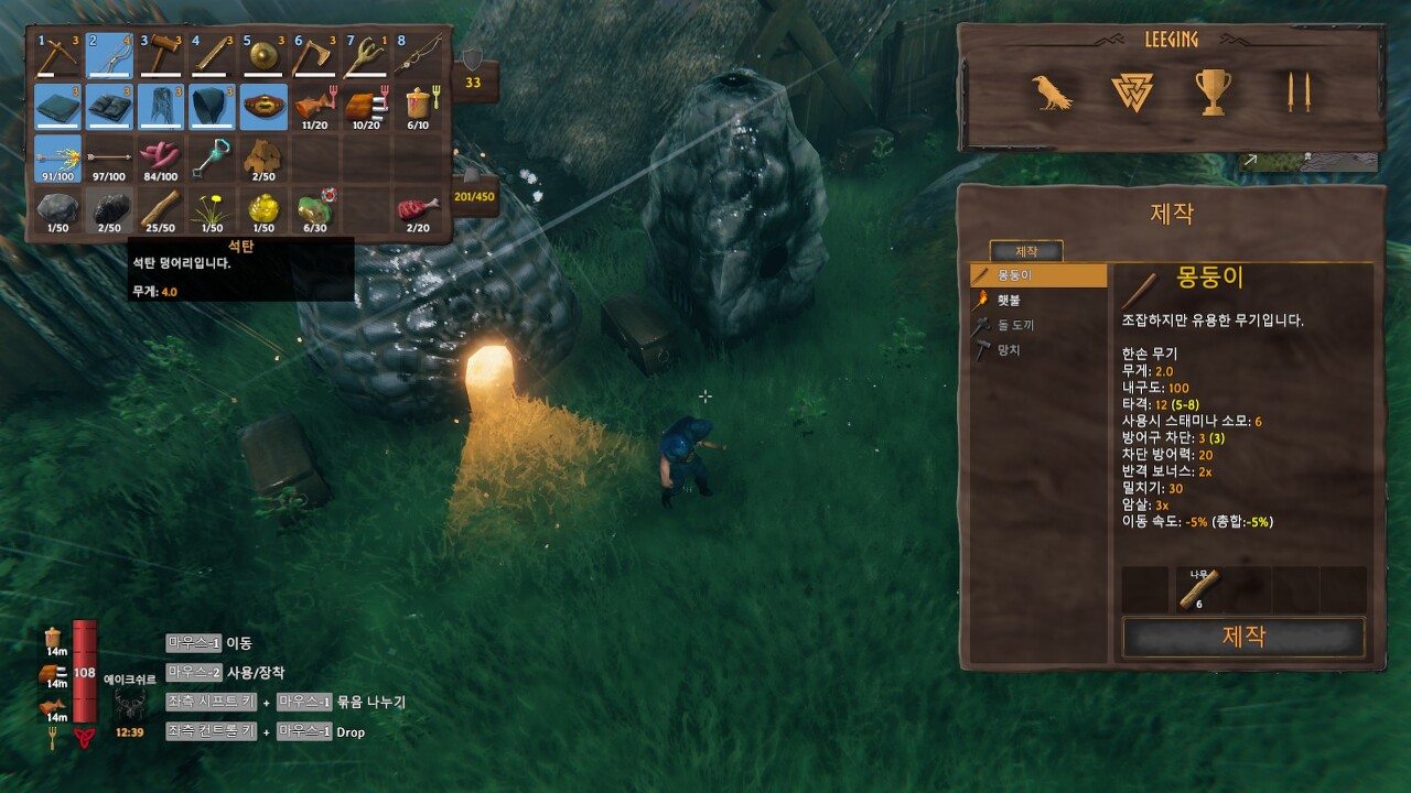 숯가마 재료: 돌 20개, 수르트링 핵 5개(늪지대 지역 묘소 던전에서 구할 수 있습니다.)