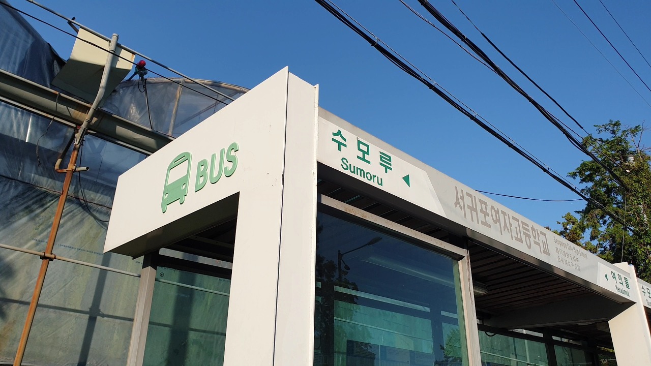 오늘은 정류장이 있는 서귀포여고까지만 걸었습니다.