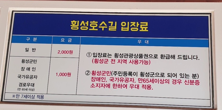 입장료는 일반 성인 기준으로 2,000원인데, 횡상관광상품권으로 환급해줍니다.