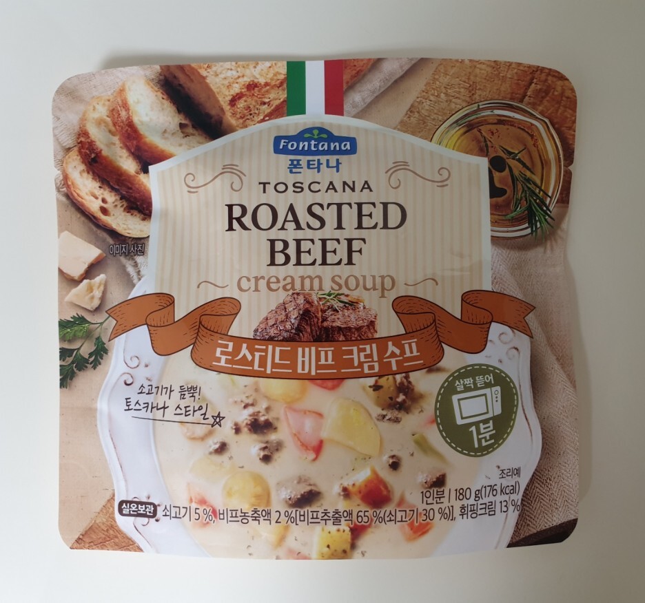 이번에 먹어본 음식은 폰타나 로스티드 비프 크림 수프 입니다.