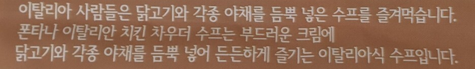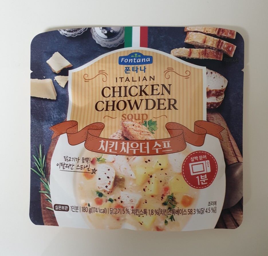 이번에 먹어본 음식은 폰타나 이탈리안 치킨 차우더 수프입니다.