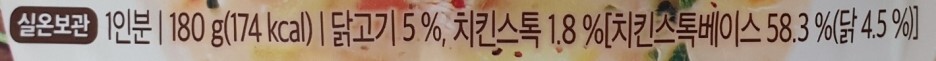 닭고기 5%, 치킨스톡 1.8%[치킨스톡베이스 58.3%(닭 4.5%)]