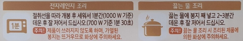 끓는 물에 봉지 째 넣고 2~3분간 데운 후 잘 저어서 드십시오.