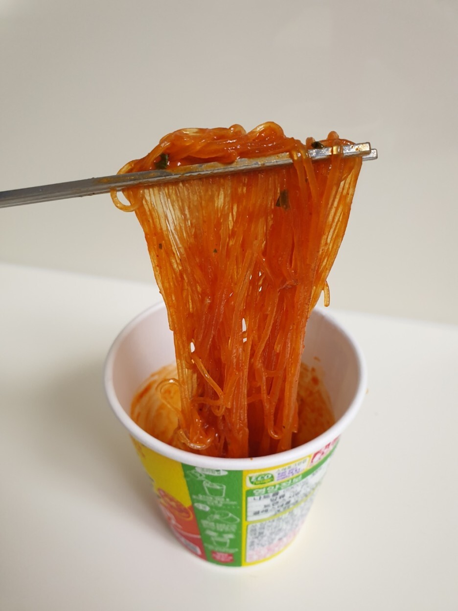 - 당면의 쫄깃한 식감을 느낄 수 있었고, 크림&치즈맛 보다는 떡볶이 소스의 맛이 비교적 강하게 느껴졌습니다.