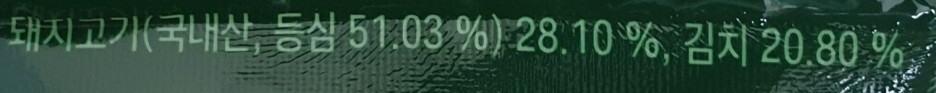 돼지고기(국내산, 등심 51.03%) 28.10%, 김치 20.80%