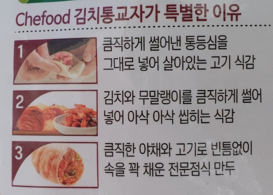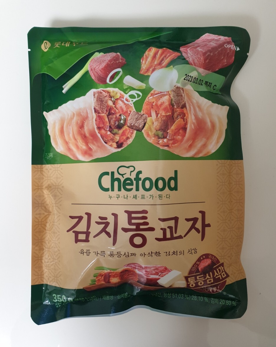 이번에 먹어본 음식은 쉐푸드 김치통교자 입니다.