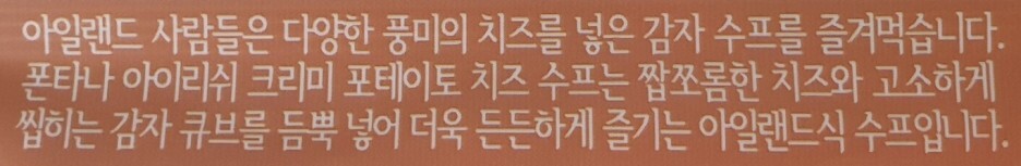 아일랜드 사람들은 다양한 풍미의 치즈를 넣은 감자 수프를 즐겨먹습니다.