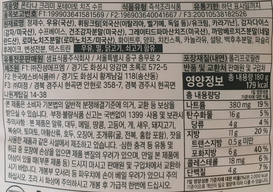 이번에 먹어본 음식은 폰타나 크리미 포테이토 치즈 수프 입니다.