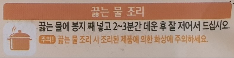 끓는 물에 봉지 째 넣고 2~3분간 데운 후 잘 저어서 드십시오.