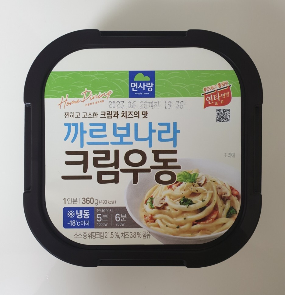 이번에 먹어본 음식은 까르보나라 크림우동 입니다.