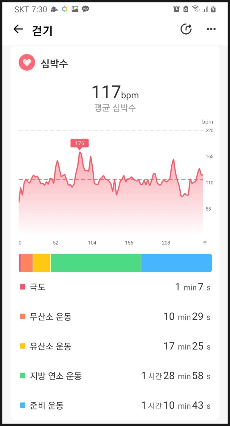 운동기록이 잠시 멈춘 것을 확인할 수 있습니다.