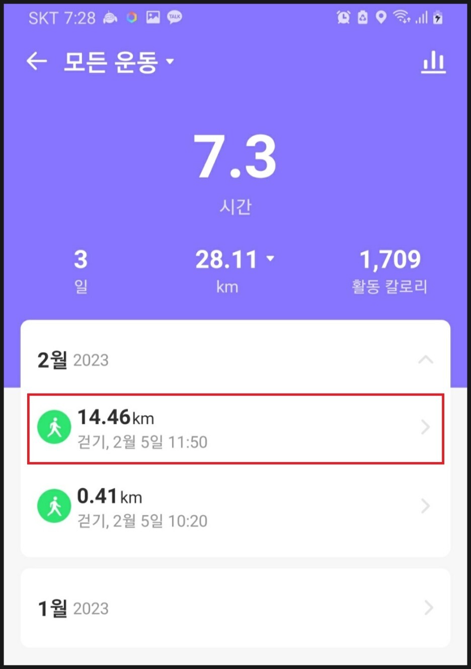 화면을 아래로 내리면 다양한 운동 정보를 확인할 수 있습니다.