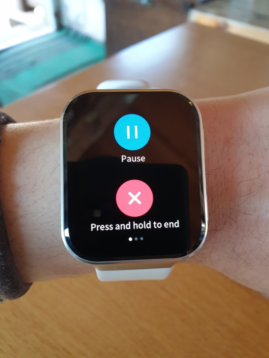 운동을 하다가 휴식을 하게될 경우에는 Pause 버튼을 터치해서 잠시 멈출 수 있습니다.