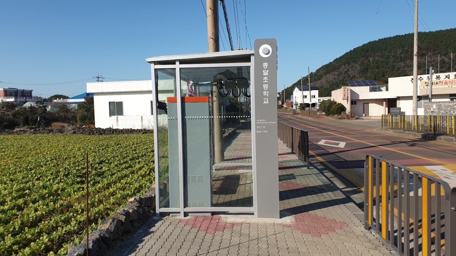 버스정류장이 있는 종달초등학교에서 걸음을 멈추었습니다.