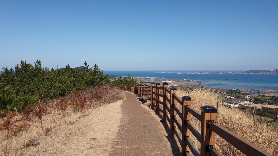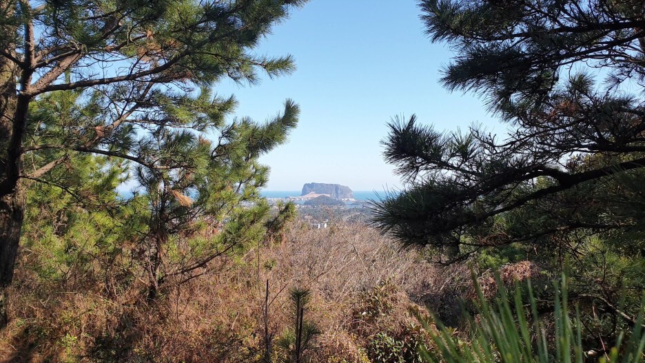 아직은 나무 사이로 제한적으로 성산일출봉이 보이지만,