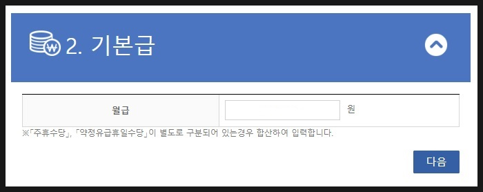 월급(혹은 일급)을 입력한 뒤 다음을 클릭합니다.