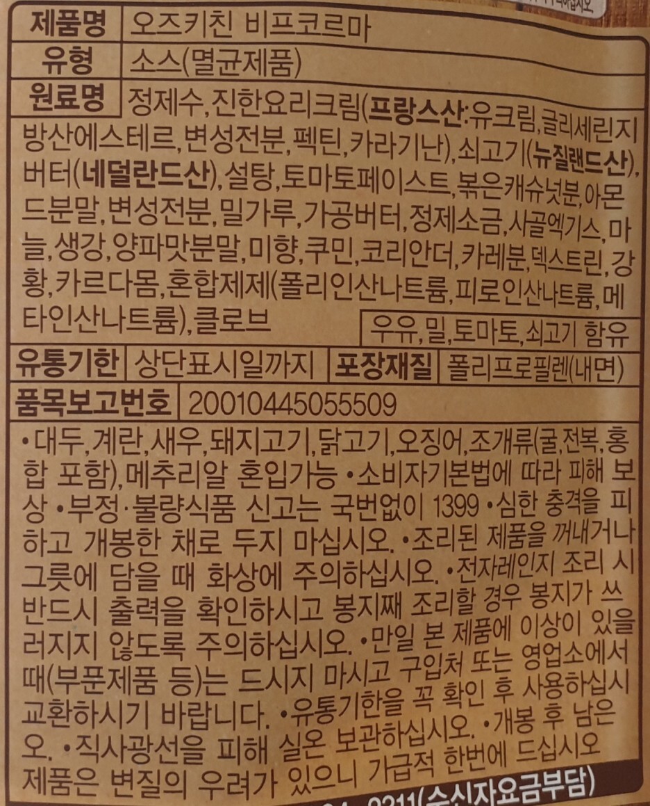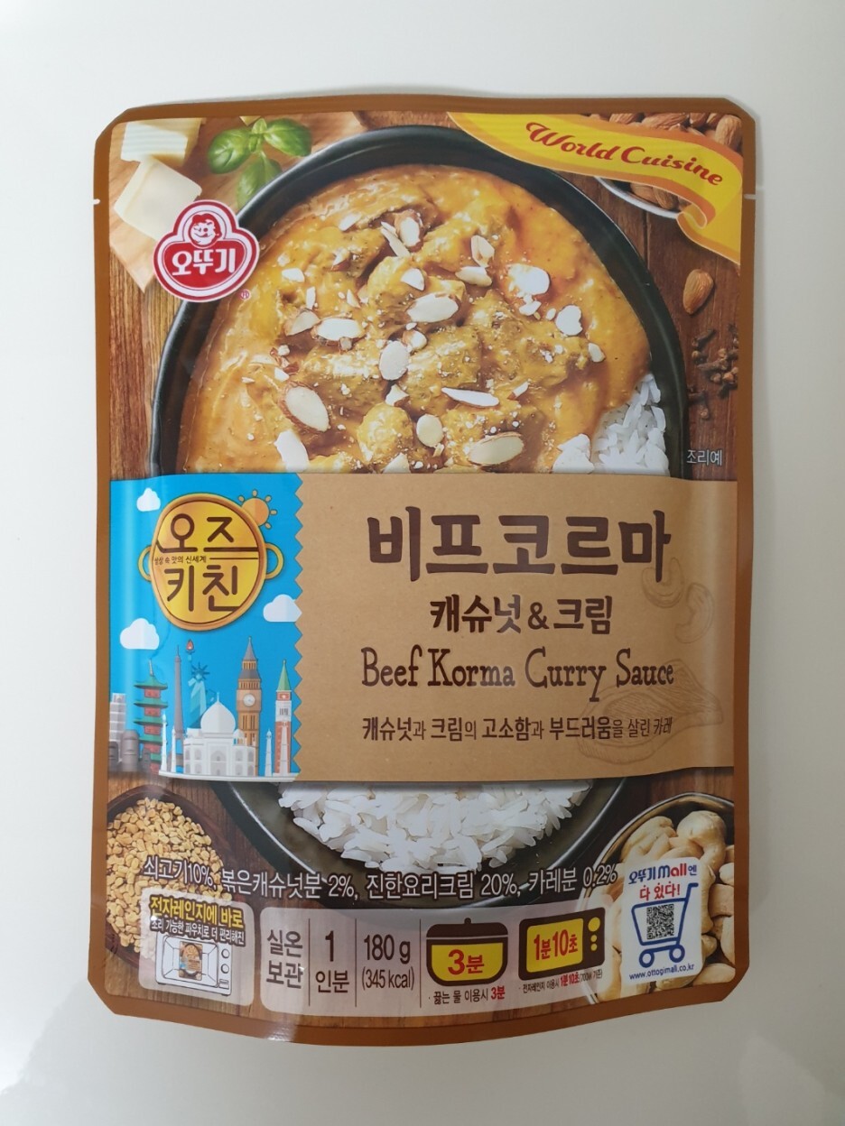 이번에 먹어본 음식은 오뚜기 오즈키친 비프코르마 캐슈넛&크림 입니다.