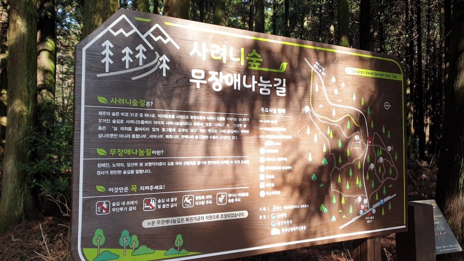1. 사려니숲길: 입구가 2개 있는데, 붉은오름 방향에 있는 숲길 입구에 주차 후 탐방하는 것을 추천