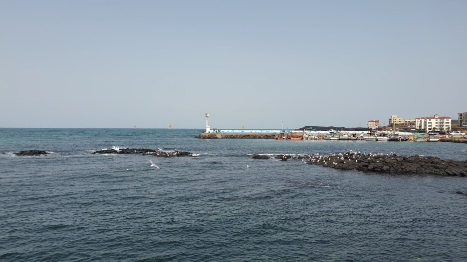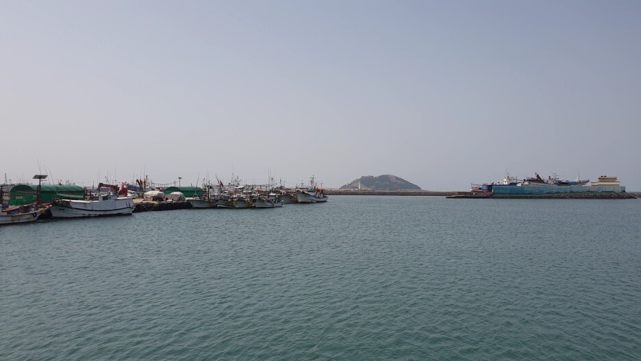 항구 사이로 보이는 비양도