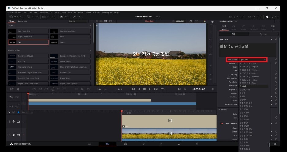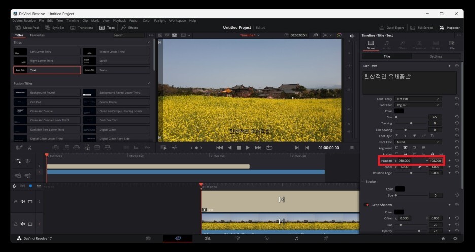 Text를 드래그해서 타임라인에 옮겨줍니다.