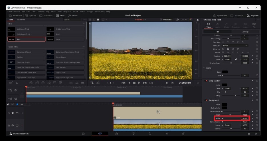 Height에서 백그라운드의 높이를 조정해줍니다.
