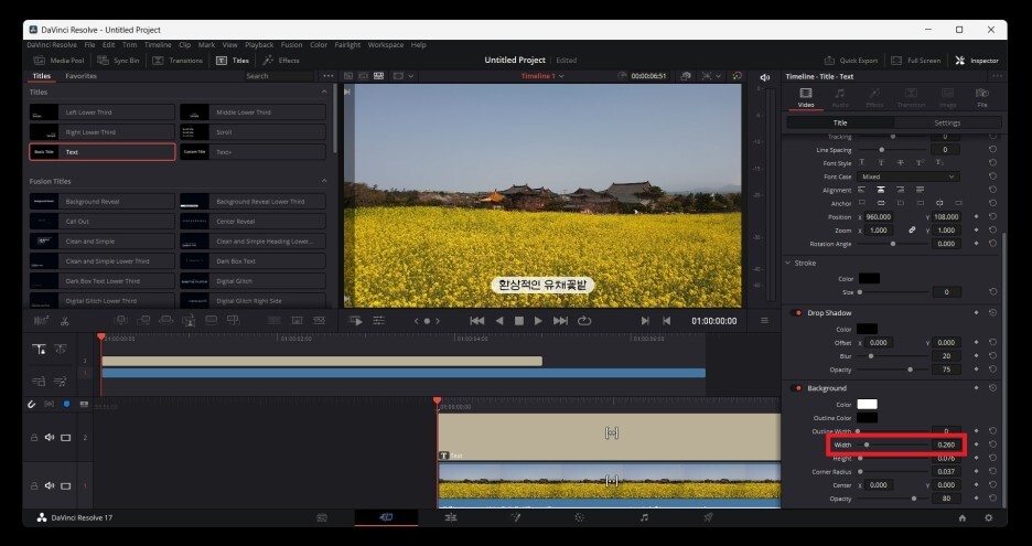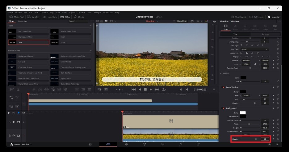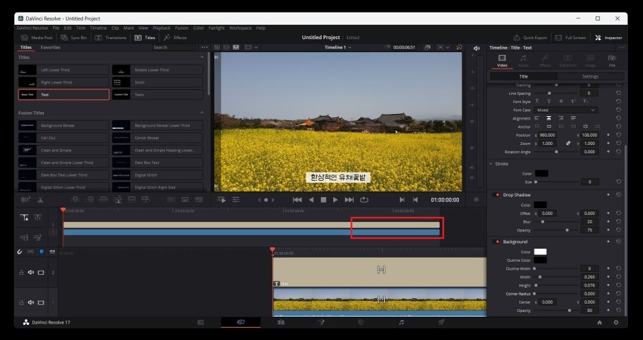 타임라인에 자막라인이 추가된 것을 확인할 수 있고,
