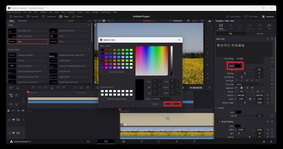 Color에서 원하는 색상을 선택한 뒤 OK를 눌러줍니다.