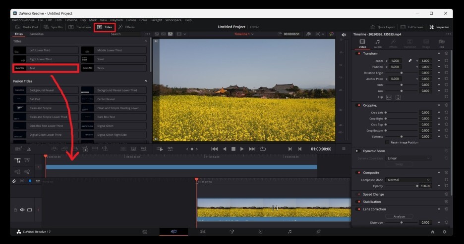 자막을 넣기 위해 위쪽에 titles를 클릭합니다.