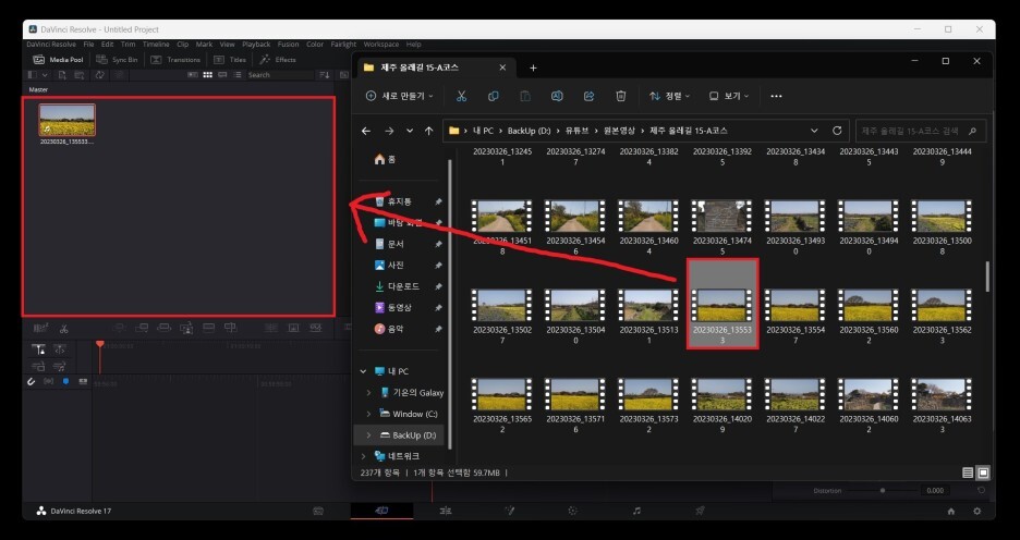 원하는 영상을 드래그해서 옮깁니다.