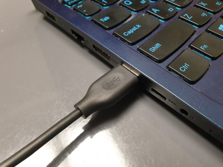 USB to C 케이블로 연결했고, 사진에 보시면 오른쪽에 파란불이 들어 옵니다.