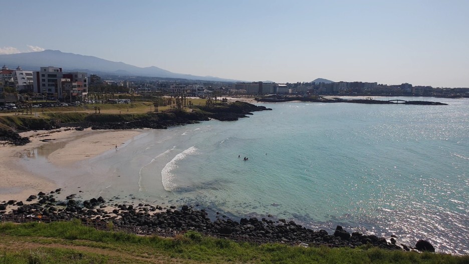 왼쪽에 성산일출봉과 오른쪽에 섭지코지가 보이네요.