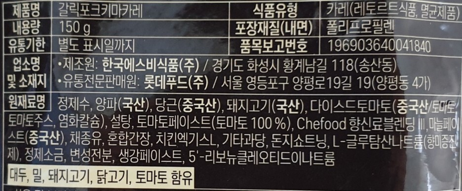 이번에 먹어본 음식은 쉐푸드 갈릭포크 키마카레 입니다.