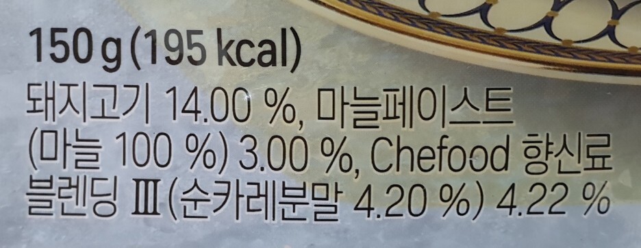 돼지고기 14%, 마늘 페이스트 (마늘 100%) 3%, Chefood 향신료 블렌딩 Ⅲ(순카레분말 4.2%) 4.22%