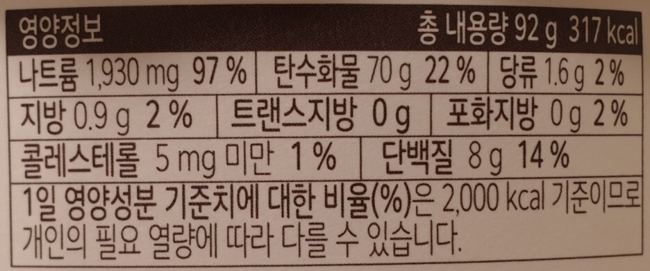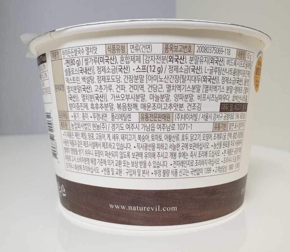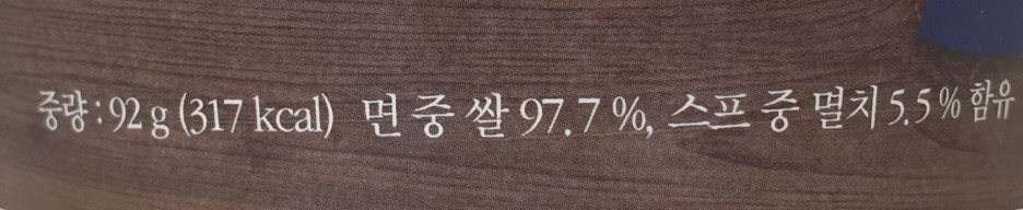 면 중 쌀 97.7%, 스프 중 멸치 5.5% 함유