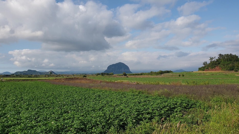 알뜨르 비행장에서 바라보는 산방산