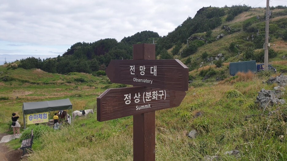 정상(분화구) 방향으로도 갈 수 있지만, 둘레길을 걷기 위해 전망대 방향으로 걸어가보겠습니다.