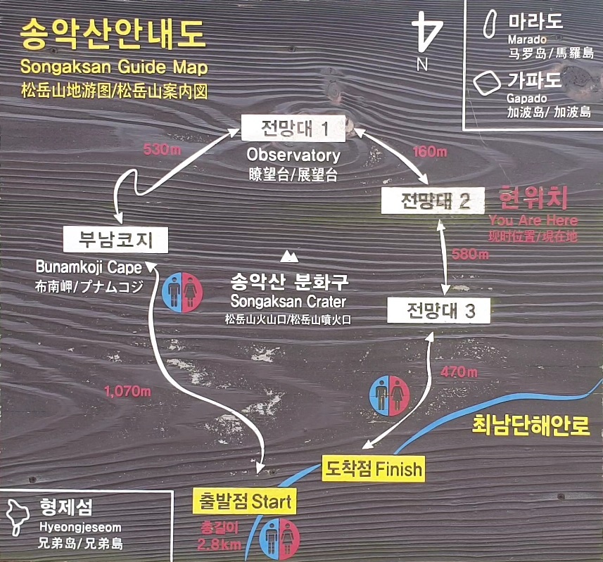 보통 관광객들은 1전망대까지만 왔다가 돌아가는 경우가 많은데, 꼭 둘레길 한 바퀴를 다 돌아보는 것을 추천드립니다.
