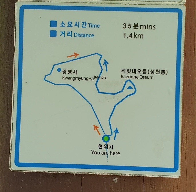 1. 코스 : 중문우체국 정류장 하차 → 광명사까지 걷기 → 베릿내오름 정상(성천봉) → 광명사