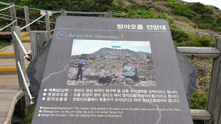 윗세오름과 남벽분기점 사이에 있는 방아오름 전망대에서 잠시 쉬었습니다.