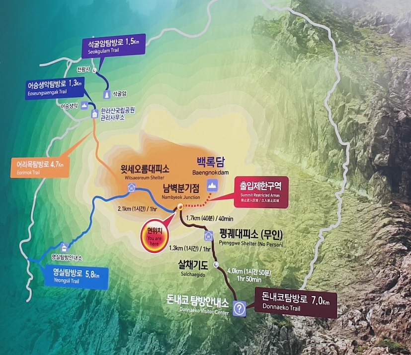 그리고 남벽분기점에서는 백록담 정상으로 올라갈 수 없습니다.