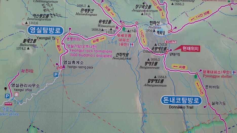 총 3개의 코스(영실, 돈내코, 어리목)를 통해 남벽분기점으로 올 수 있습니다.