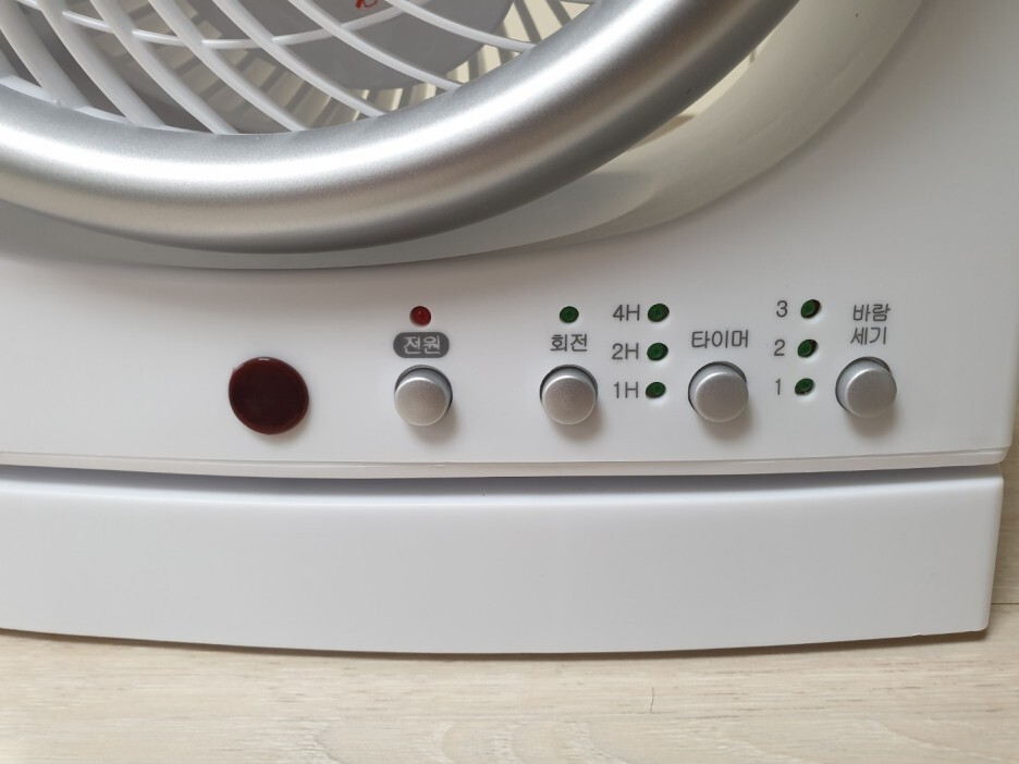 전원버튼과 회전버튼이 보이고, 타이머는 1시간, 2시간, 4시간으로 설정이 가능합니다.