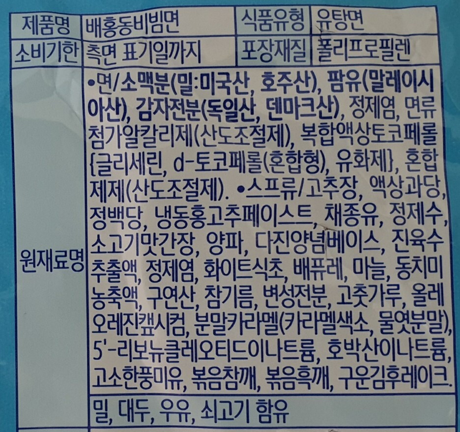 이번에 먹어본 음식은 농심 배홍동 비빔면 입니다.