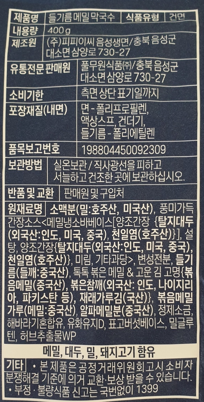 이번에 먹어본 음식은 풀무원 들기름 메밀 막국수입니다.