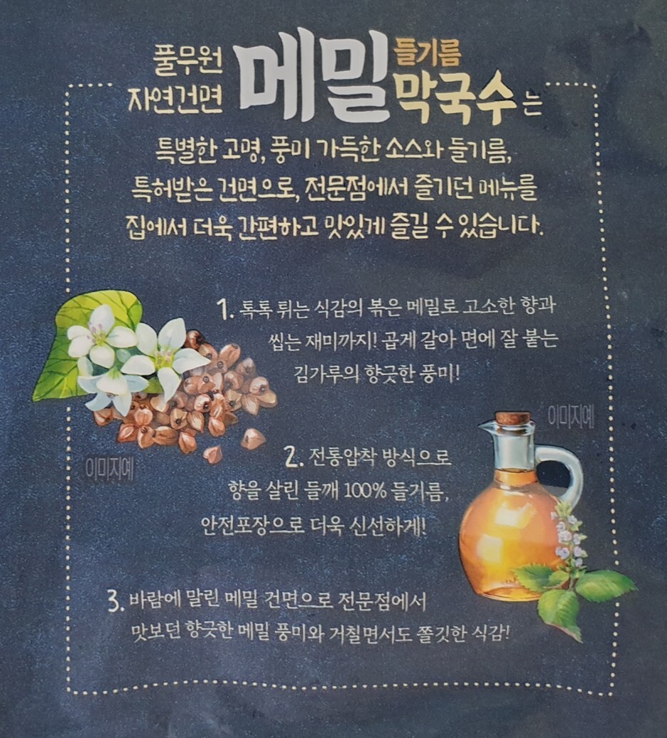 - 메밀과 김가루, 들기름, 참깨까지 들어 있어서 고소한 맛을 강하게 느낄 수 있었습니다.